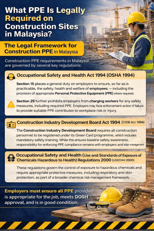 The poster above summarises the key legal requirements for construction PPE in Malaysia.