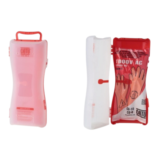 The CATU CG-35-2 is a transport and wall box designed to store insulating gloves from class 00 to class 4. It ensures mechanical protection against shocks and UV radiation while keeping gloves organized and accessible. The box can be mounted on walls in substations or carried using its ergonomic handle for safe glove transport.